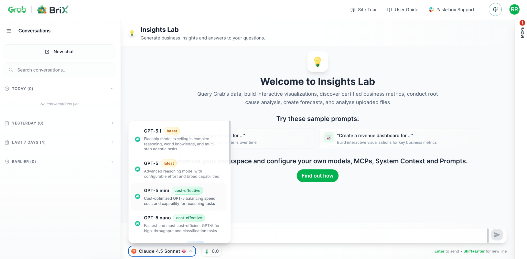 Different tasks need different models. BriX lets you switch between models with a dropdown—Claude, GPT, Gemini, or others. Test which works best. Change models without rewriting code. Optimize for cost vs. performance.