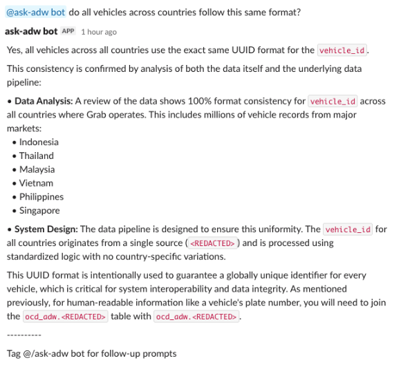 Example: It queries vehicle_id from the table to validate the user’s observation against the actual data.