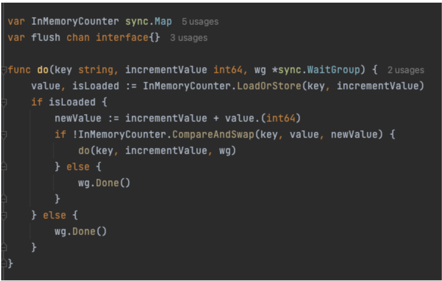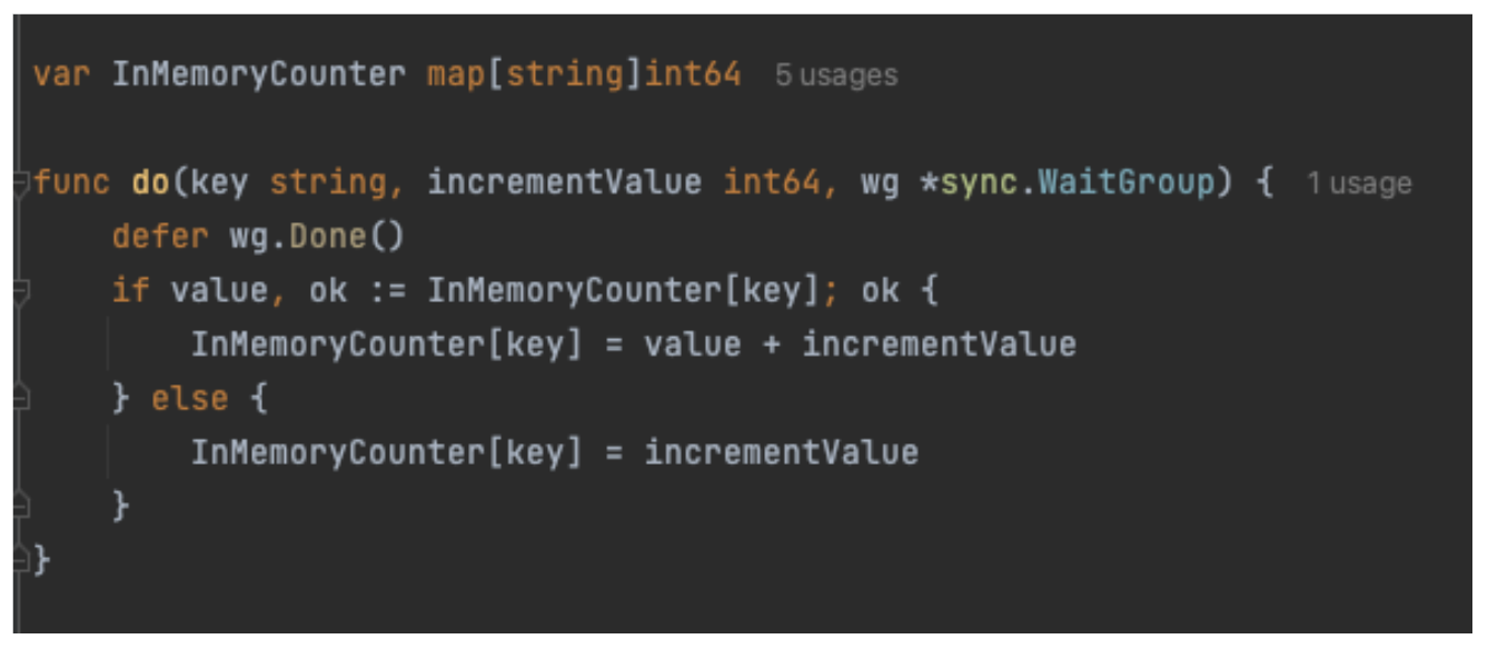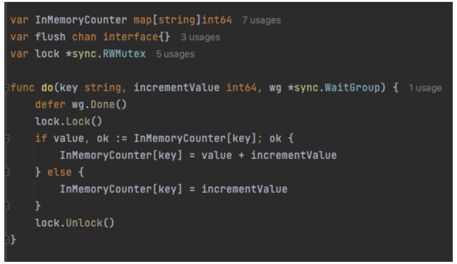 Simple GoLang code for writing an in-memory counter may look like the code sample shown in Figure 1.