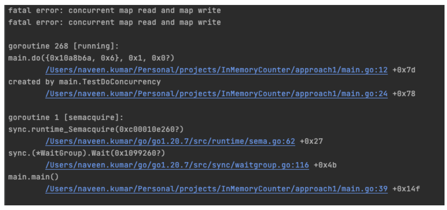 function increments the counter value against the key. However, this code fails to work when multiple Goroutines (GoLang version of threads) try to access this do