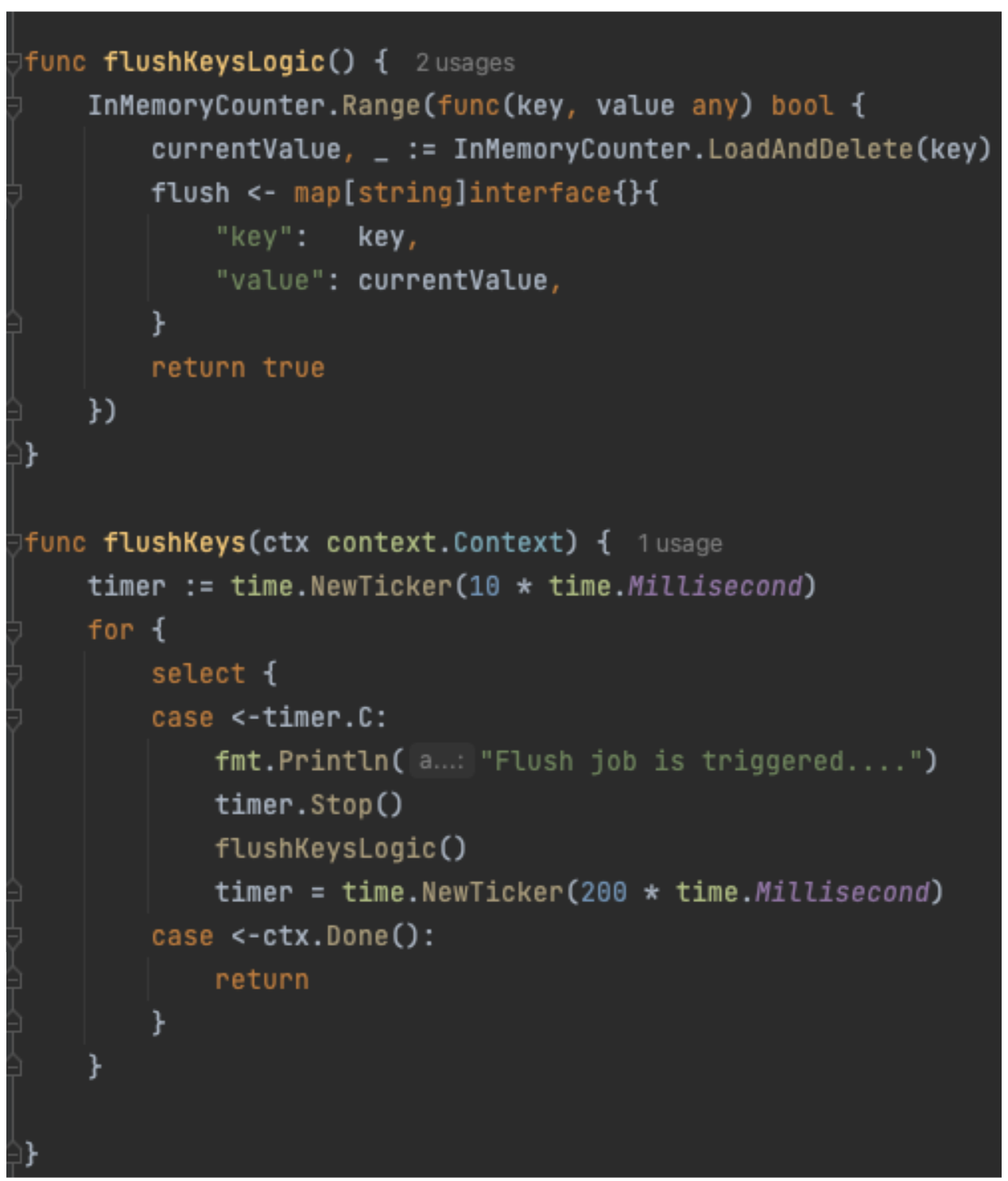 The code for the functional requirement of periodically flushing the counter value to the storage layer is shown in Figure 4.
