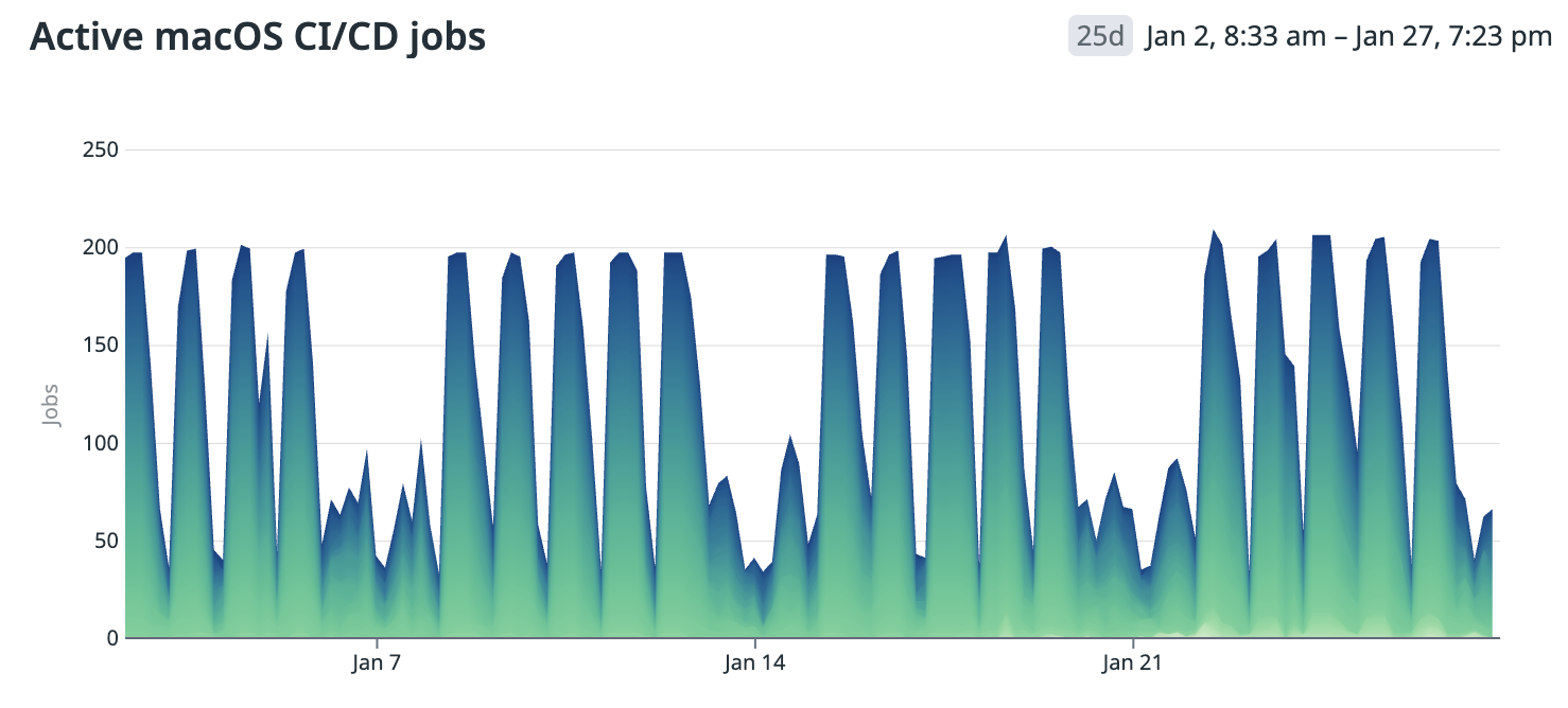 Any disruption to the macOS CI/CD cluster would be hugely disruptive to the company given our scale highlighted above. So, we enabled new cluster partially for part of the workload for a reasonably long period of time and monitored and compared: