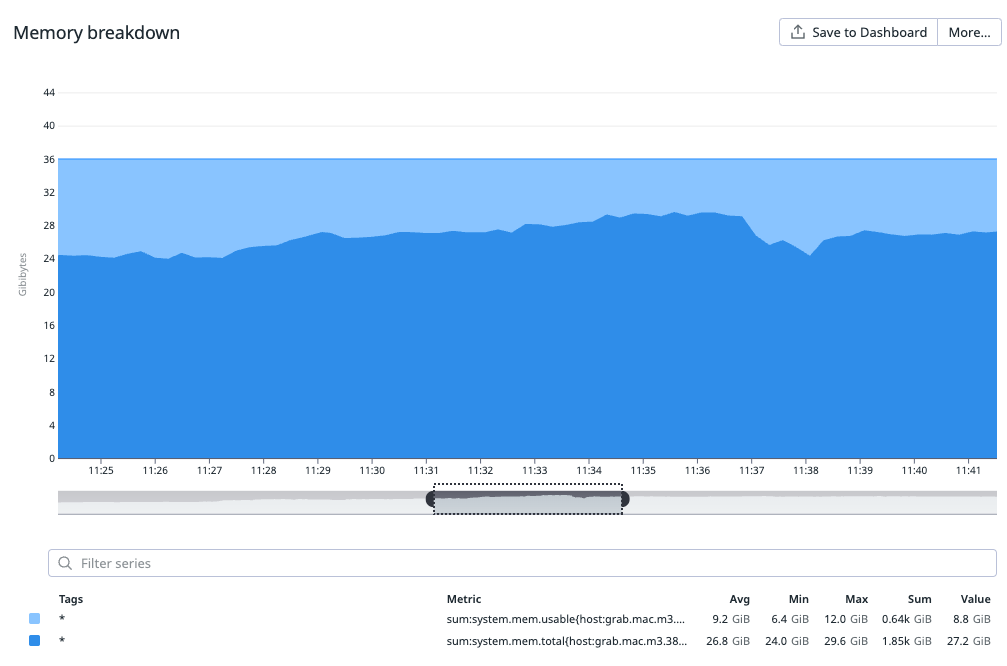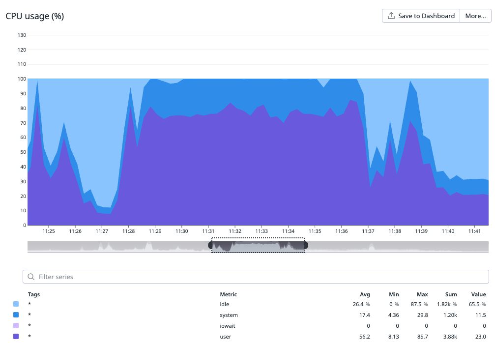 Our choice of hardware model for our build and test workload was guided by a cost-benefit analysis. We decided to use bare-metal setups without virtualization, simplifying migration processes, which may be revisited in the future. We ensured we neither over-specified nor under-specified the bare-metal hardware. We had a clear understanding of the resource consumption of our most demanding workload on a few reference models, as illustrated in the following graphs.